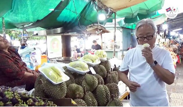 植野 篤志・駐カンボジア日本大使はこのほど、プノンペンのセントラルマーケットを訪れ、カンボジアの多彩な果物を試食し、その魅力を発信した。
