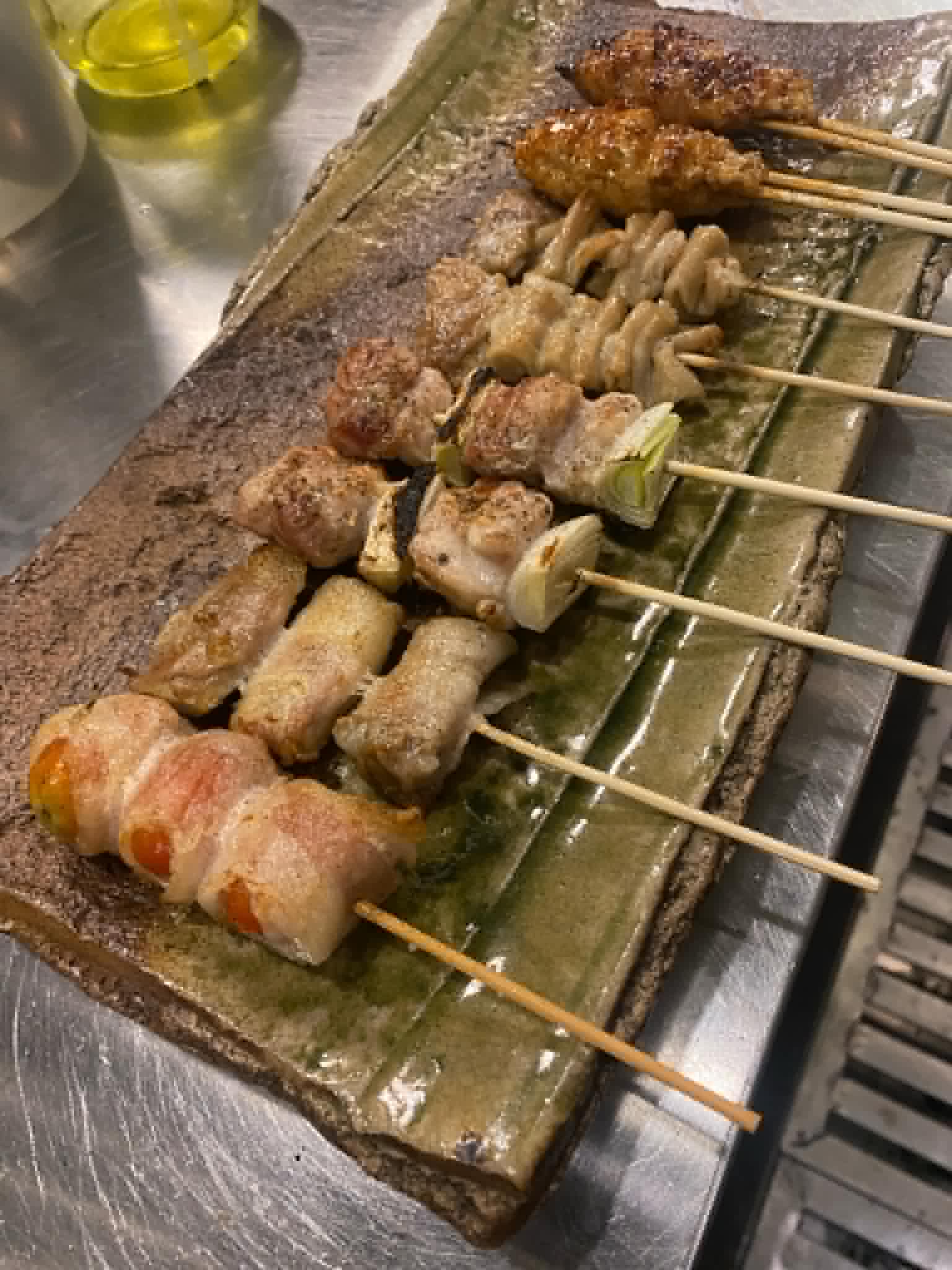当店手作りのつくねや人気のしろなどを入れたおまかせ串焼きです。