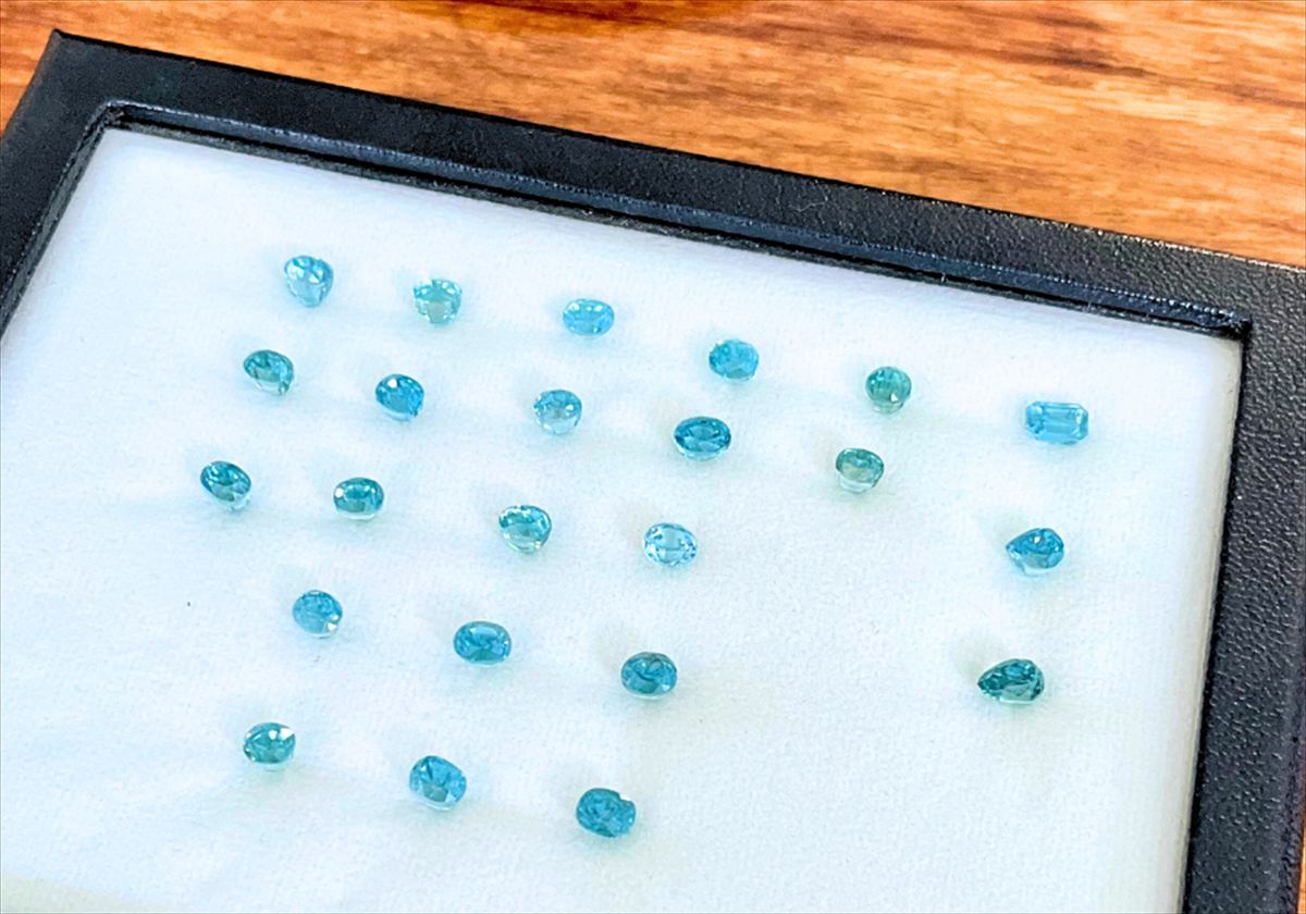 最大の魅力は、深い湖を思わせる透明感のある青色。ジルコン自体は古代から人々に親しまれてきた鉱物ですが、ラタナキリ産は特に鮮やかで澄んだブルーが特徴です。採掘された原石は加熱処理を施すことで、さらに鮮明で美しい青へと磨かれます。カンボジアらしい特別感があるジュエリーです。