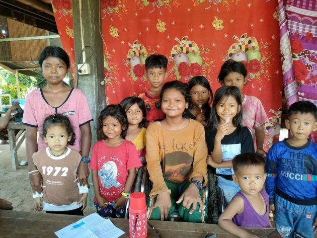シェムリアップ近郊の農村部に暮らすスレイヤーは、出会った当時14歳でした。手足に麻痺が有るため学校へ通うことはできません。日中することが無く、家の軒下のハンモックで過ごしていました。身体に障がいはありますが、知的な障がいは無く、字を読んだり簡単な計算をしたり、人との会話も問題なく出来ます。