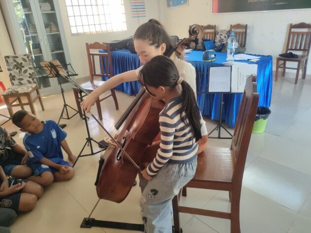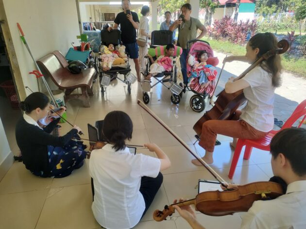 昨年12月、世界を舞台に活躍されているバイオリニストの五嶋みどりさんとのご縁を得て、彼女が主宰するNPO法人ミュージックシェアリングの若手演奏家によるカルテット(弦楽四重奏)のみなさんに、スロラニュプロジェクトが支援するシェムリアップ州立孤児院センターや農村部の支援児家庭で演奏を披露していただく機会を頂きました。