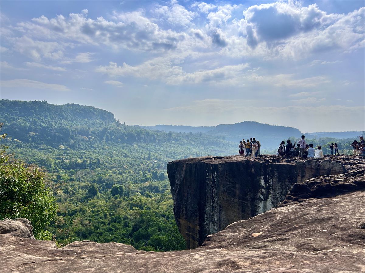 そしてもう一つ見逃せないのが、「プーン・タコー」と呼ばれる断崖絶壁の展望スポット。崖の上から見渡す景色は圧巻で、ジャングルの緑と青空のコントラストがとても美しく、思わず写真を撮りたくなる絶景が広がっています。