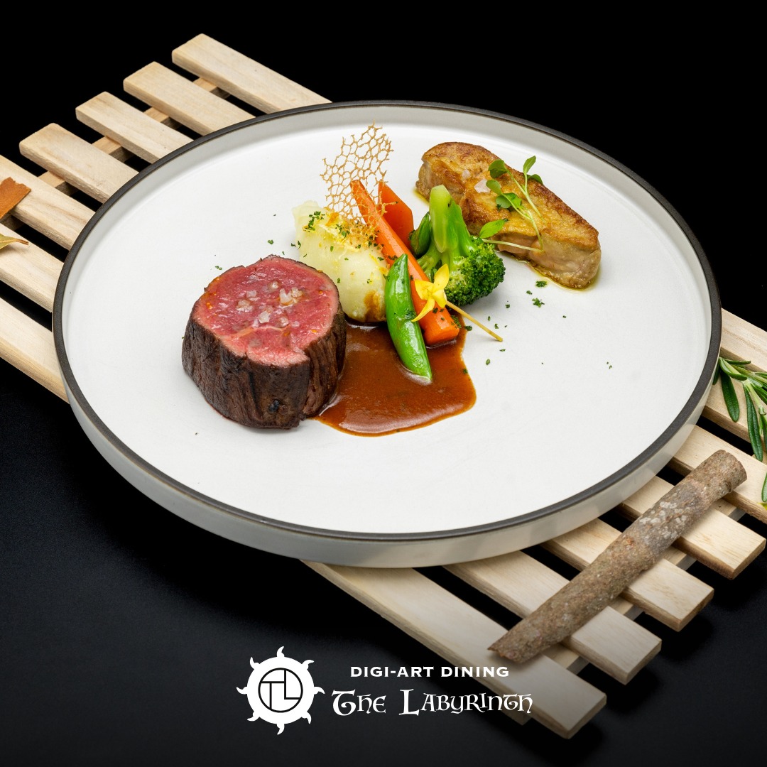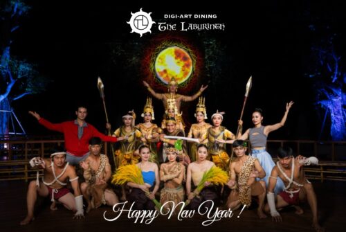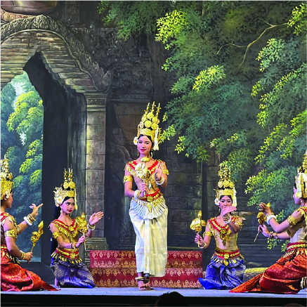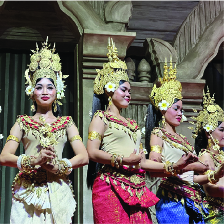 カンボジア最大級のシアター型レストラン。遺跡をモチーフにしたインテリアと光の演出で没入感あふれる空間を作り出している。創作ダンスのショーを見ながらお食事を楽しめる。