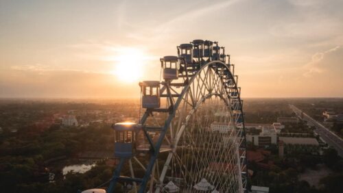 シェムリアップの美しい景色を一望できる観覧車。特に夕暮れ時の眺めは素晴らしい。