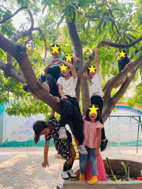 ここの校舎、特に校庭にはたくさんの思い出があります。ブランコの3人乗りでキャーキャー騒いでいたのが懐かしいです。砂場では、男子達が意味もなく深い穴を1mほど掘った事もありました。広い校庭を走り回っての鬼ごっこは、もちろん定番。木登りもよくしました。マンゴーや竜眼の木がたくさんあり、ちょうど子供が登るのにいい枝っぷり。マンゴーの季節には落ちてきたのを拾い、家主さんに包丁を借りてガリガリかじったりも。