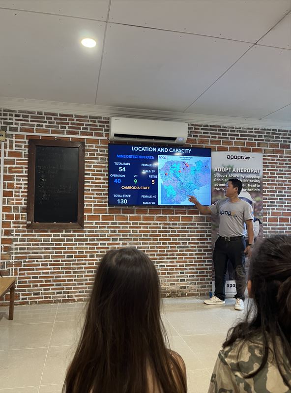 見学ツアースタート!まずカンボジアにおける地雷の歴史や種類を説明してくれます。この時はプレアヴィヒア州の国境地帯での活動事例を紹介してくれたよ。