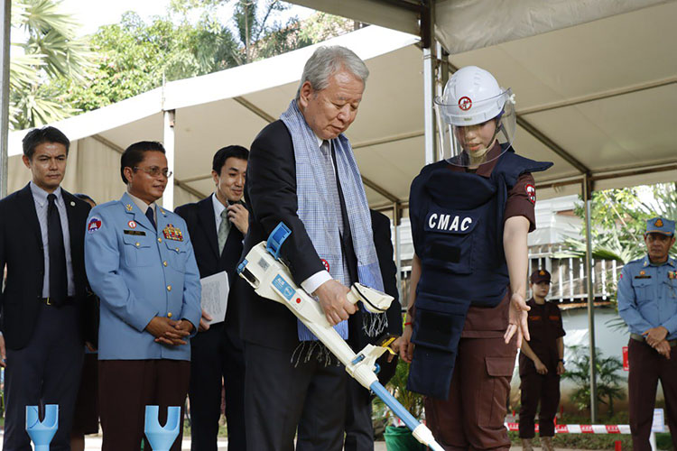 カンボジア地雷対策センター(CMAC)のヘン・ラタナ所長は12日、プノンペンのCMAC本部で国際協力機構(JICA)の田中明彦理事長と会談し、人道的地雷除去活動における協力深化について協議した。